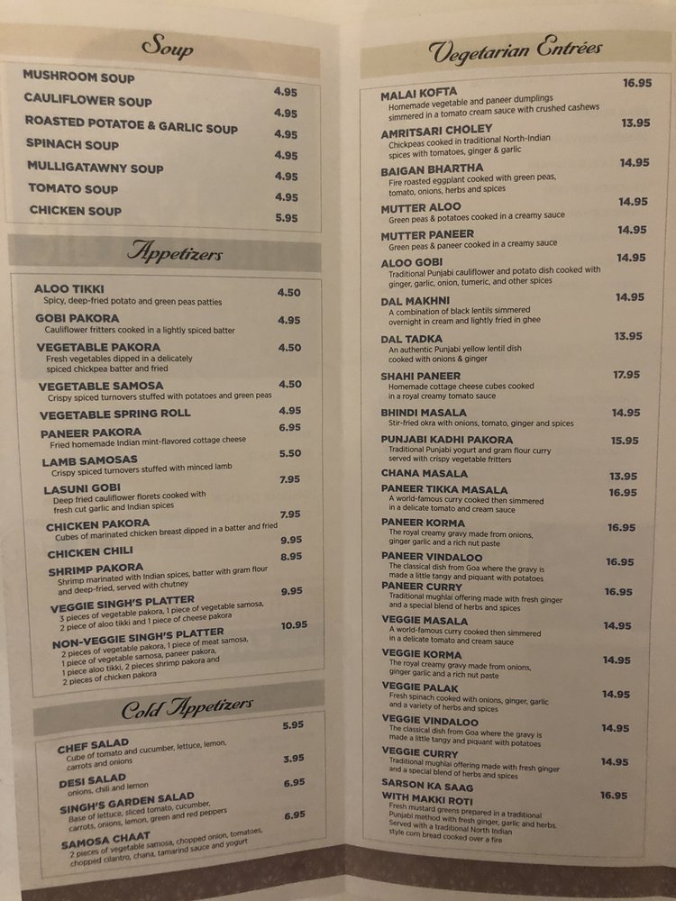 What sets Singh's Cafe apart is its extensive list of vegan and vegetarian options, ensuring that everyone can find something delicious to enjoy. The restaurant also offers a range of soups, from Mushroom to Tomato, making it a great choice for a comforting meal.